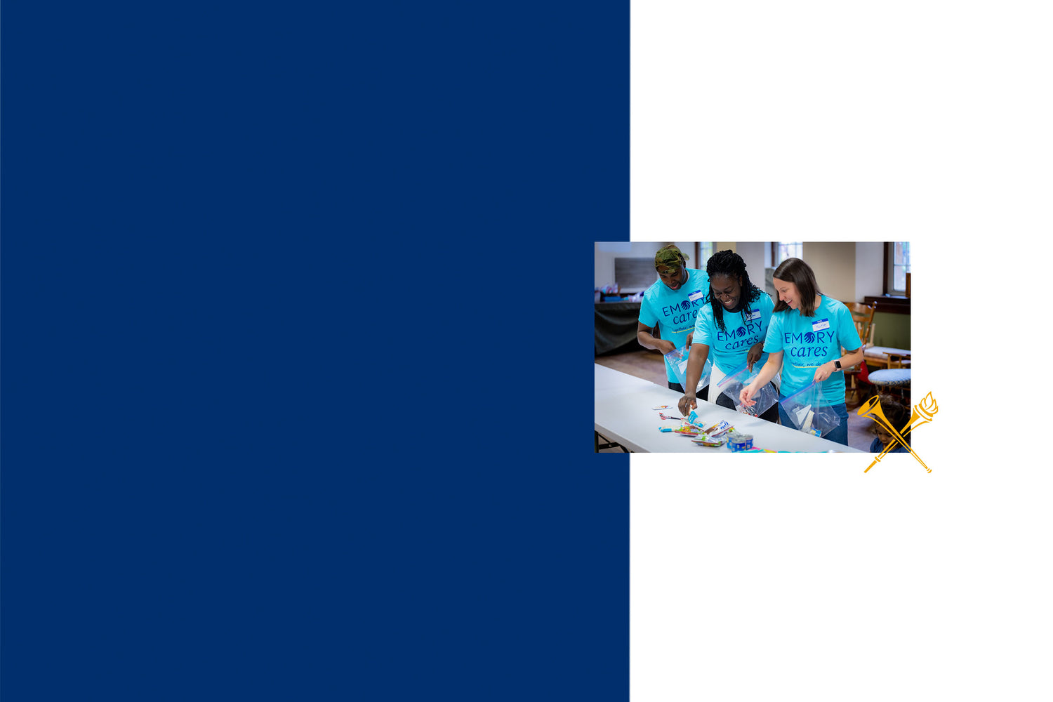 Emory Cares is year‑round volunteer movement that strengthens communities worldwide. Alumni, students, families, faculty, and friends give back through hands-on projects and flexible at-home/online options, bringing to life the university’s mission to serve humanity. Whether you pack meals, clean parks, tutor online, or support neighbors in need, you’ll join a network of Eagles serving togetherlocally and globally.