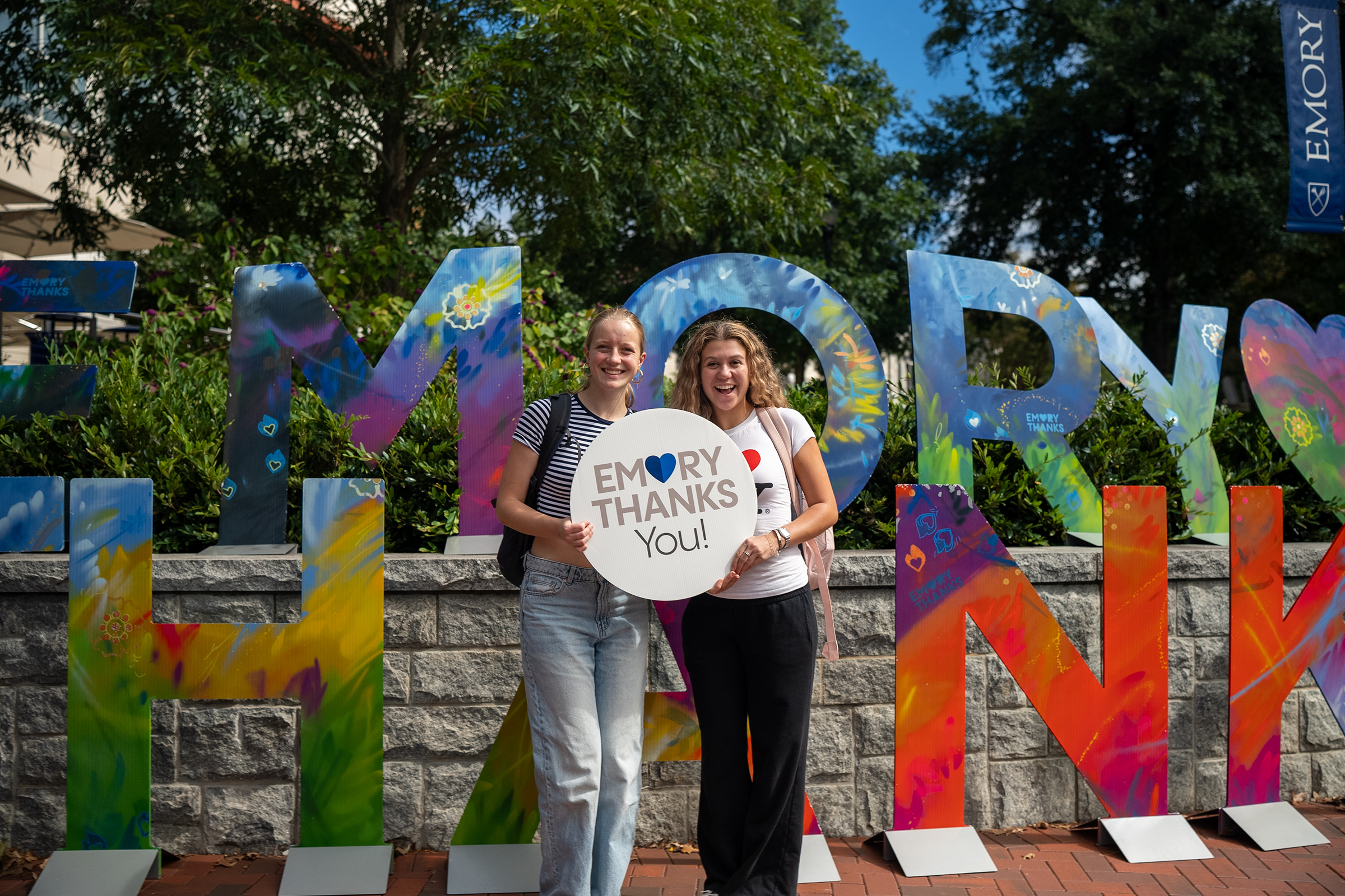EmoryThanks celebrates the support that underpins Emory’s past, present, and future. Donor gifts represent the caring and trust that thread our community together. Each year, hundreds of Emory students share their heartfelt thanks through postcards and videos for the generosity that fuels their journeys. The same generosity inspires them to give back, and Emory’s tradition of philanthropy grows stronger.